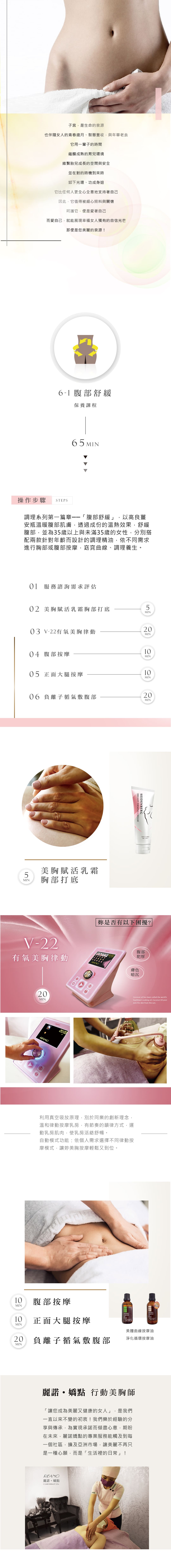 適用對象欲提前專注腹部的保健、保養/想舒緩腹部的不適症狀/期盼維持腹部肌膚的細緻與光采者